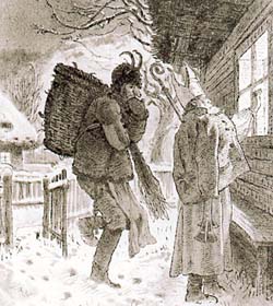 Die bekannteste dieser Gestalten ist Knecht Ruprecht, der häufig ein zottiges Gewand trägt und daher auch Pelz-Precht oder Pelz-Percht genannt wird. Letztere Bezeichnung stellt eine Verbindung zu Bercht her, die in verschiedenen Nächten der Weihnachtszeit Kinder und Mägde schreckt aber auch Gaben verteilt.